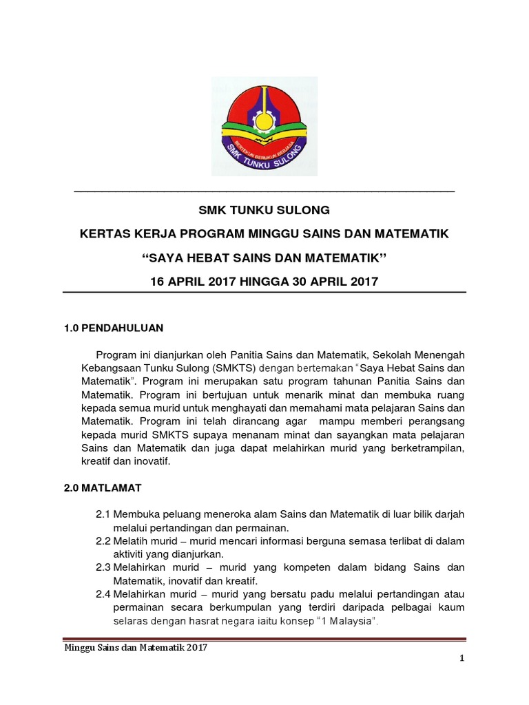 Kertas Kerja Minggu Sains Dan Matematik 2017 Pdf