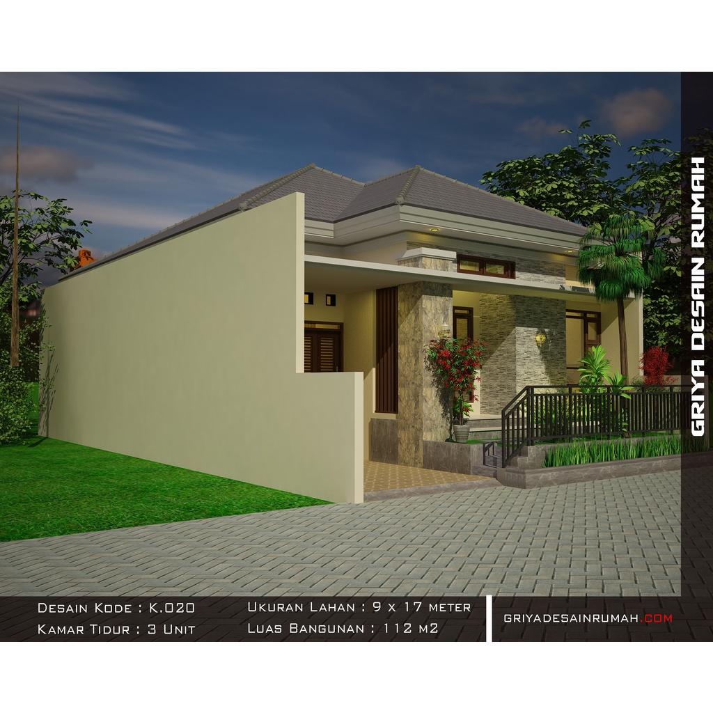 Jual Gambar Rumah 1 Lantai Lebar 9 Meter Denah 3 Kamar Tidur Dan Mushola Desain Minimalis Shopee Indonesia
